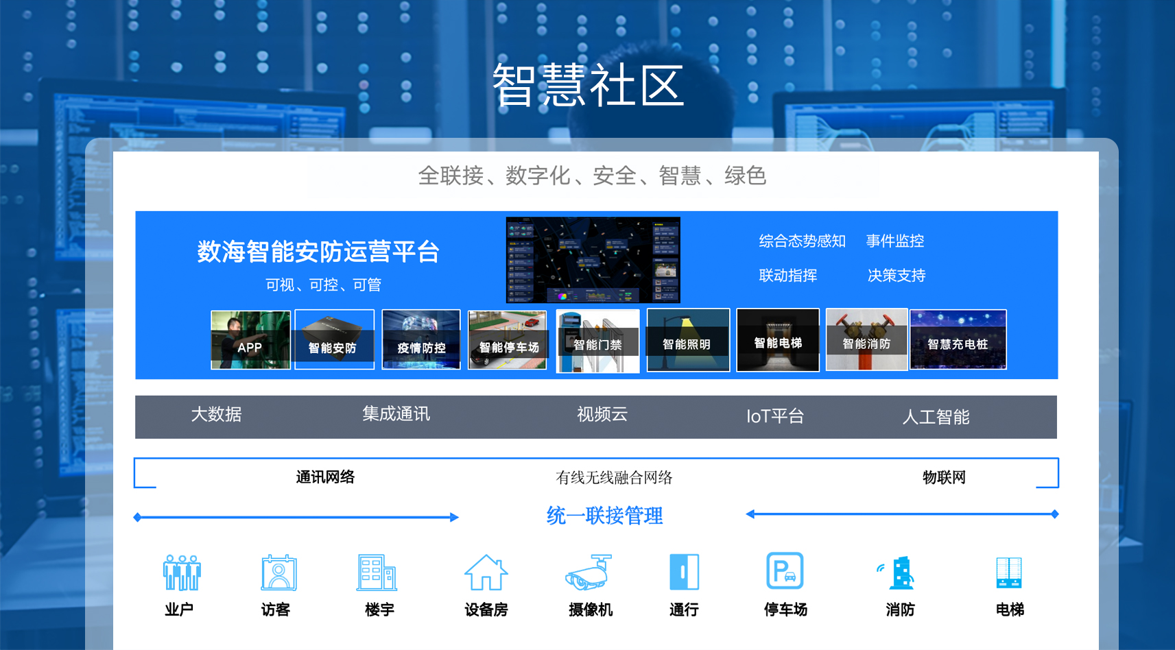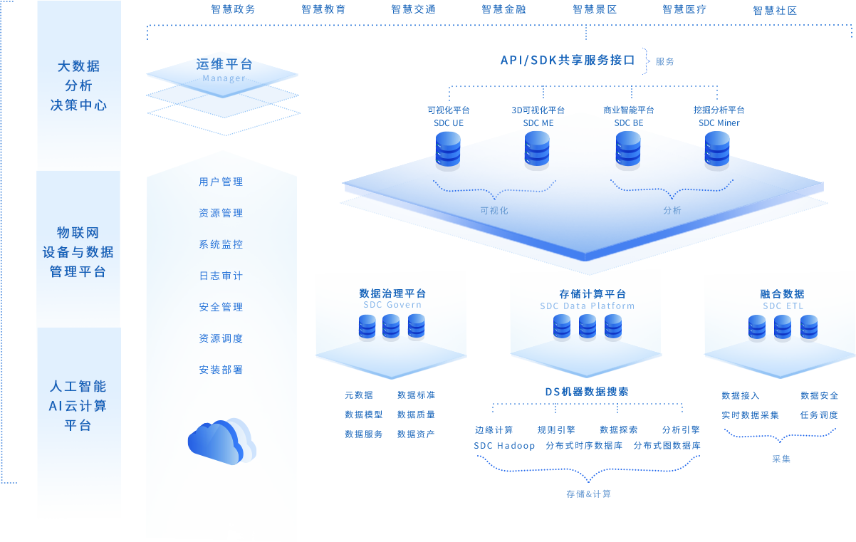 基于人工智能、多模态通信、高分遥感等核心能力,结合声学智能与精密光学技术,为数字城市的智慧政务、智慧教育、智慧交通、 智慧金融、智慧景区、智慧医疗、智慧社区等多个业务场景,提供更加实战高效、短链闭环的解决方案。